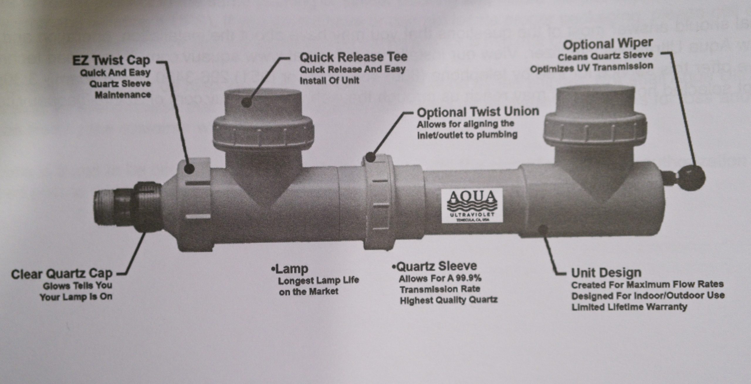 Aqua Ultraviolet U.V. sterilizers are one of the most popular U.V. lights available.  This company is an industry standard, and these sterilizers work very well.  They are available in many different sizes and are easy to install into any system, new or existing.  They are a great addition to all pond systems to ensure crystal clear water without using and relying on chemicals to clear green “pea soup” water.