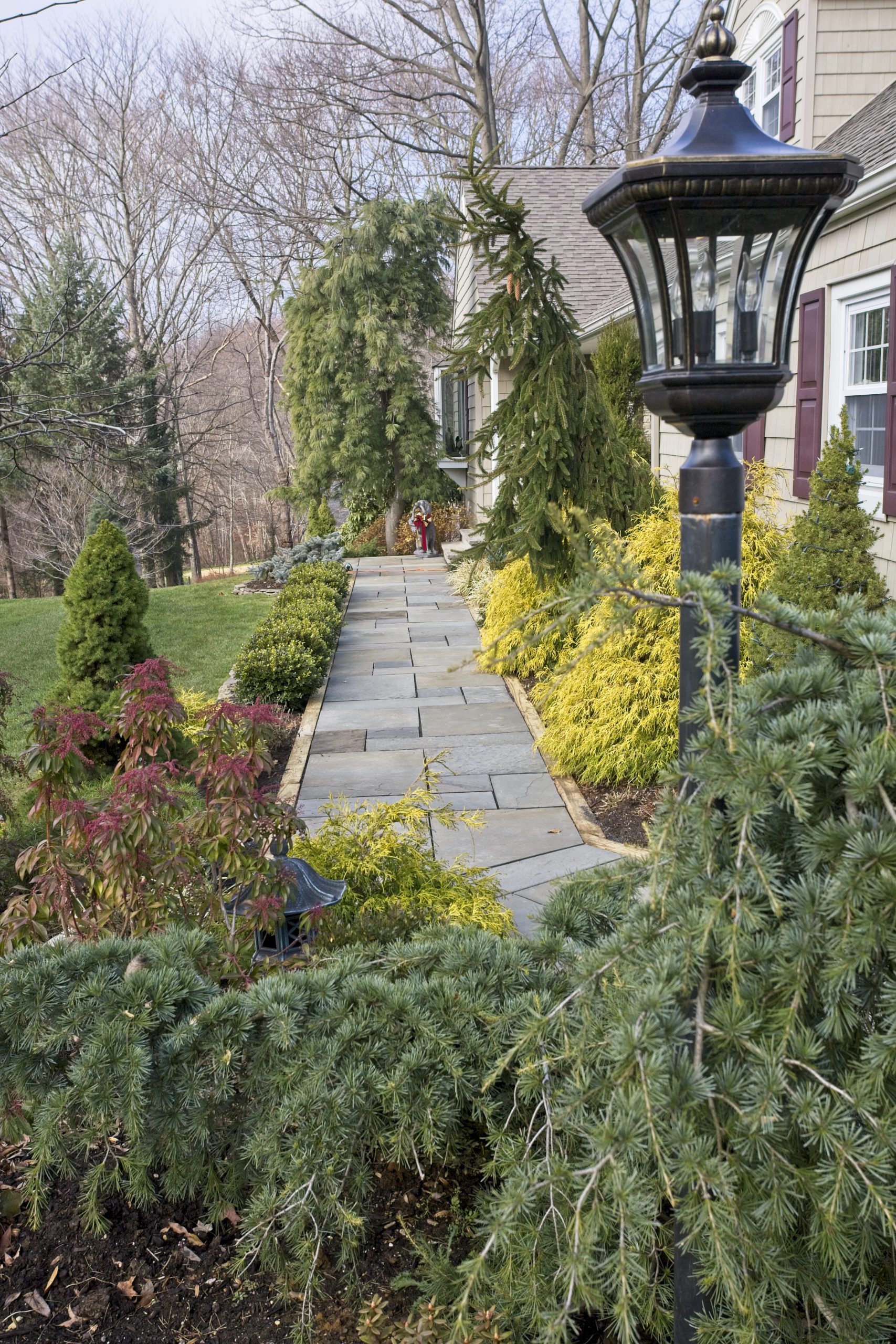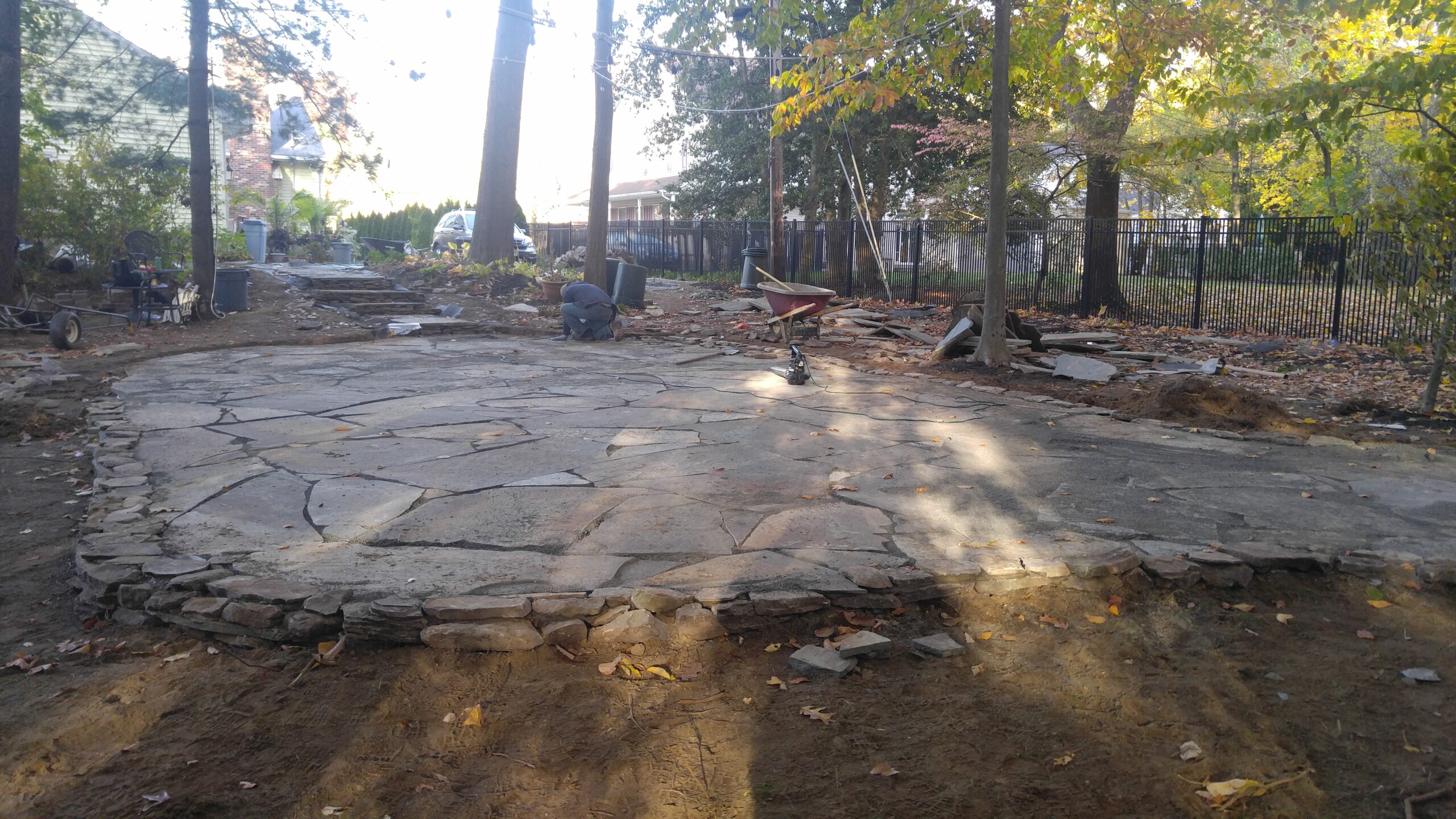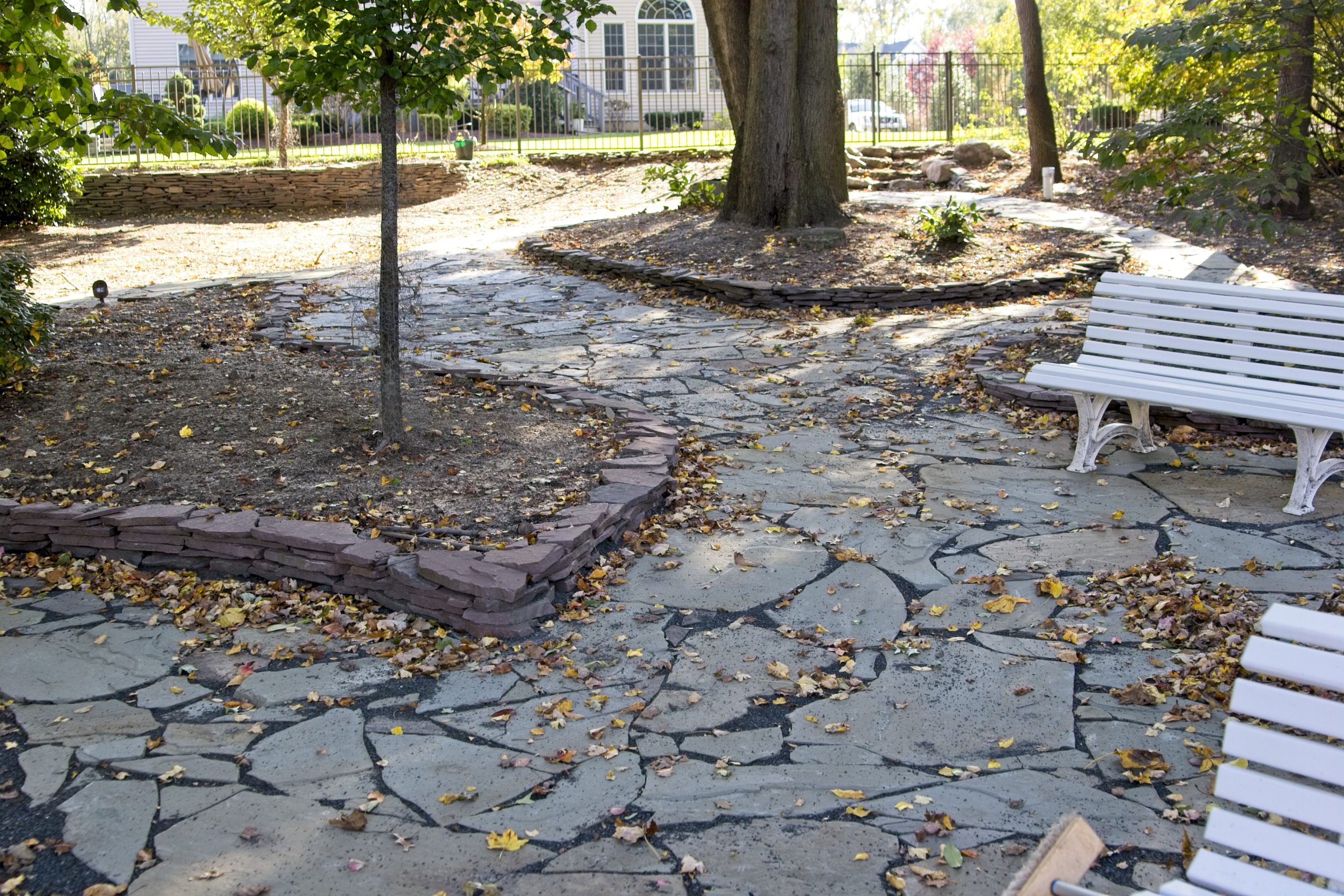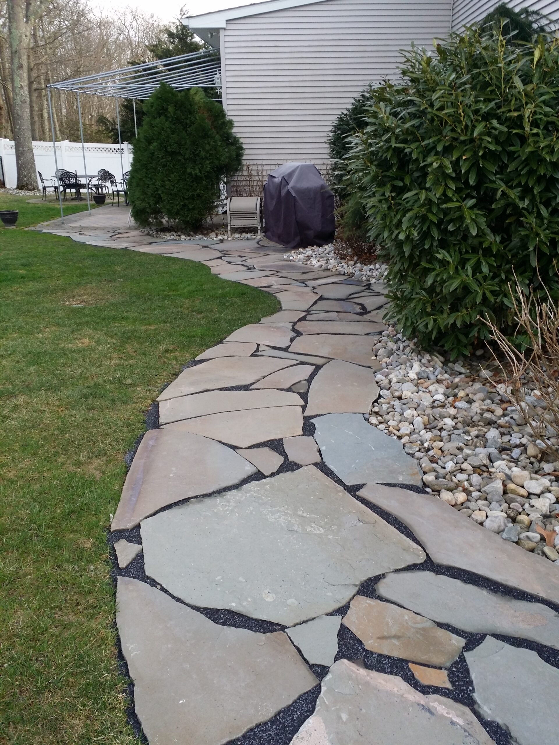 Bluestone Walkways and Patios A bluestone walkway combining 2’x3′, 2’x2′, 1’x3′, 1’x2’and 1’x1′. Bordered by 4″x6″ pressure treated lumber.