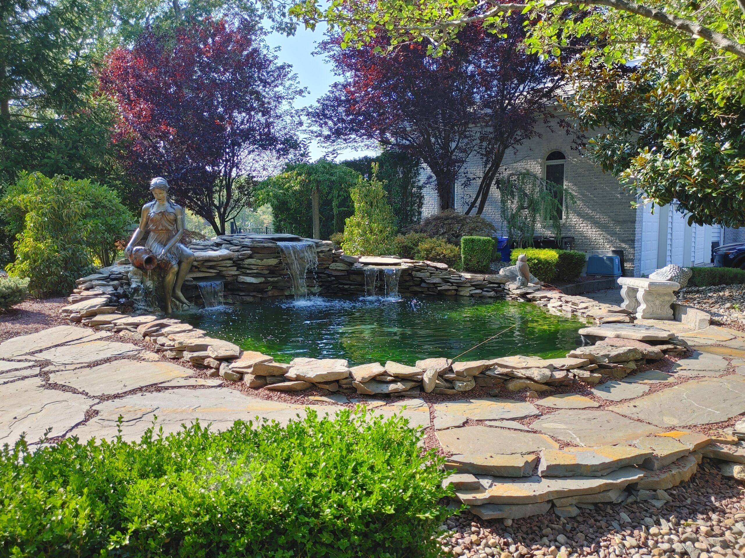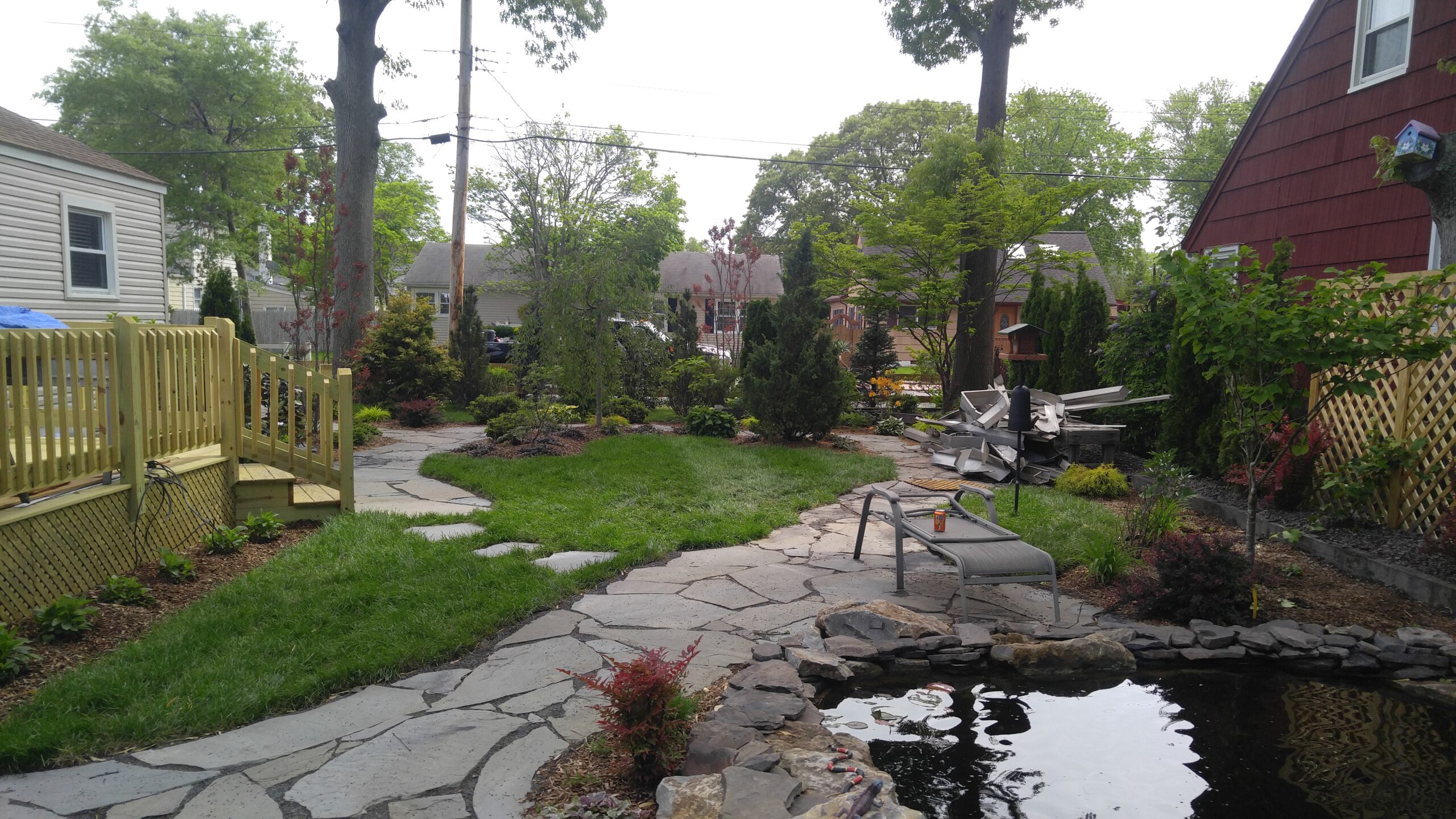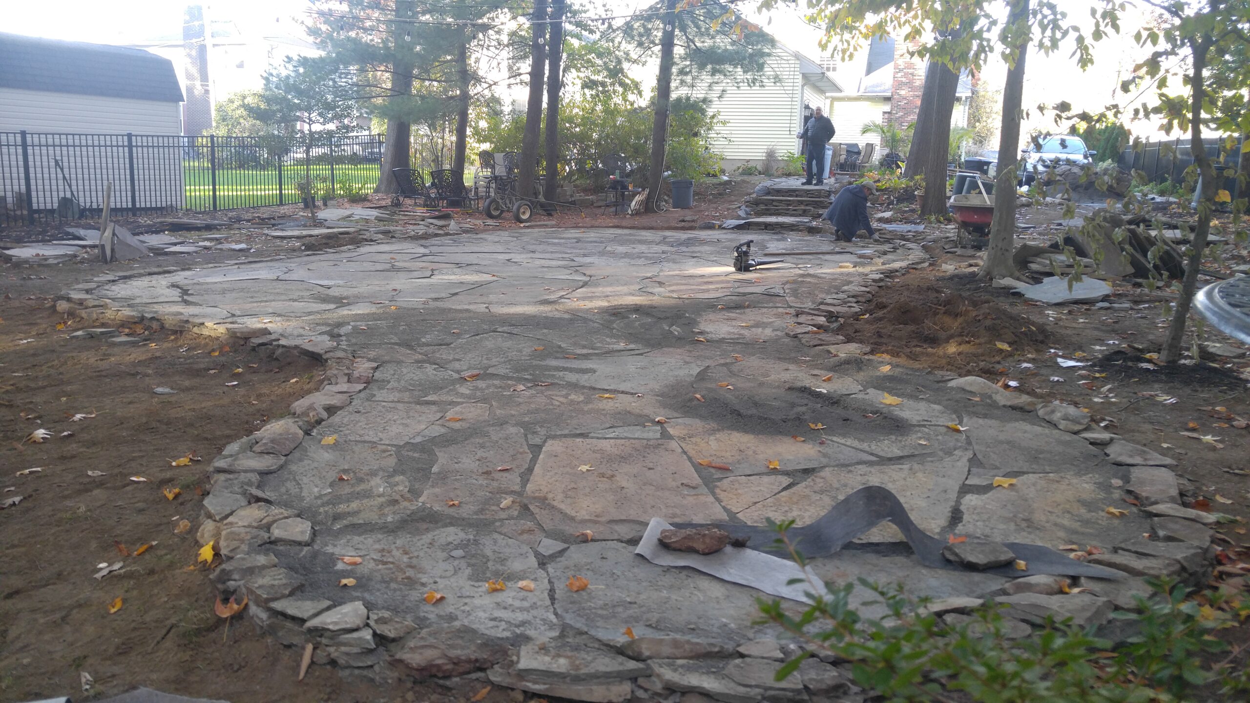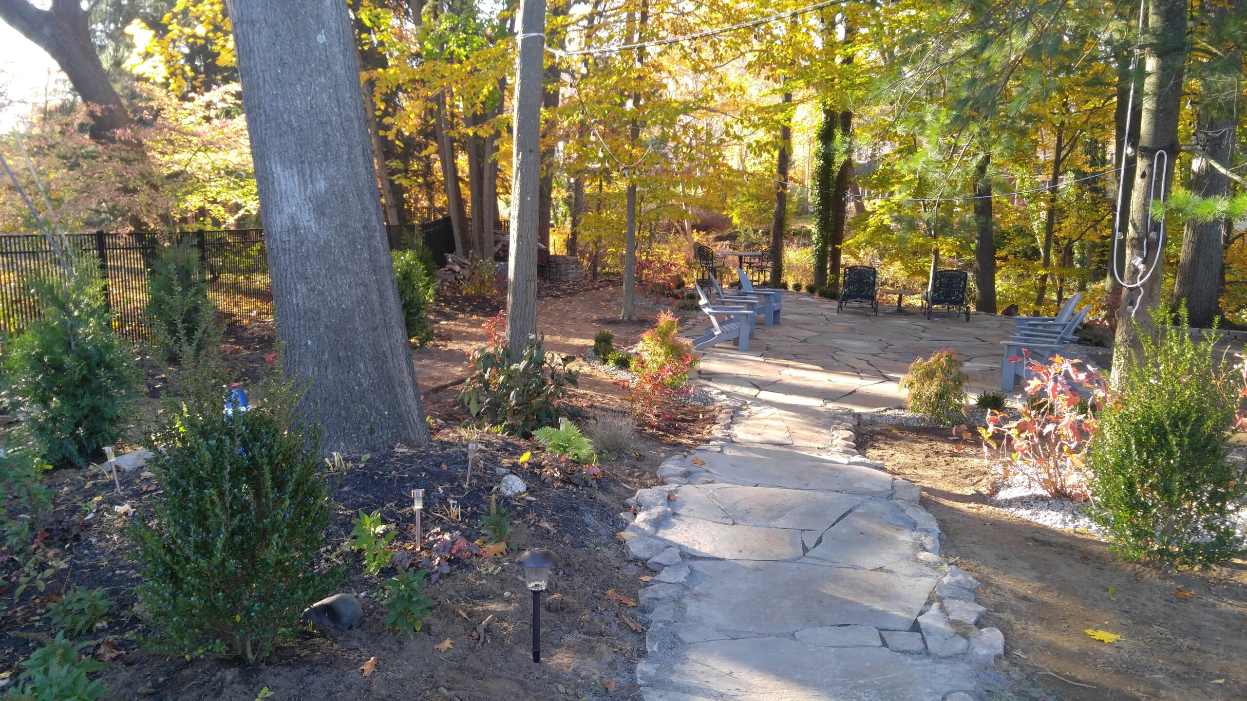 Bluestone Walkways and Patios A bluestone walkway combining 2’x3′, 2’x2′, 1’x3′, 1’x2’and 1’x1′. Bordered by 4″x6″ pressure treated lumber.