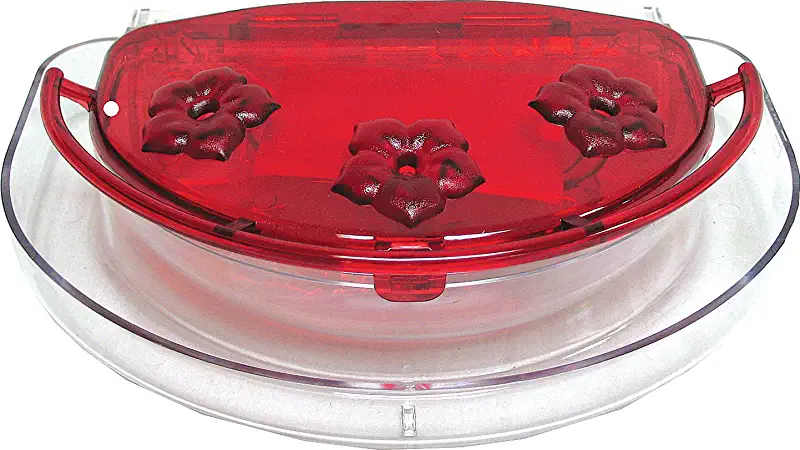 This is my favorite hummingbird feeder. I have used these for years, and the hummingbirds love it! It has a built-in ant moat, perches and bee guards. Easy to take apart and clean.