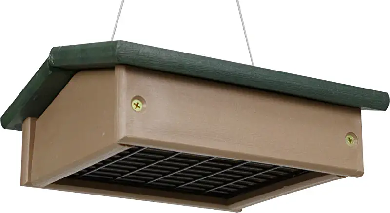 This type of suet feeder is great because only the woodpeckers and nuthatches can get the suet. All other birds and squirrels can’t eat it. These are becoming very popular. It is made from recycled materials and will last forever.